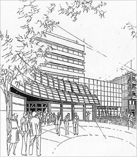 wir für dieses Areal ein Einkaufszentrum vor - mit einer Ladenpassage als