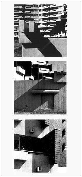 ![]() Fassadendetails im Innenbereich einer neungeschossigen Wohnzeile (Detailfotos: H. Grempel) |