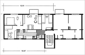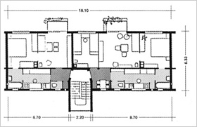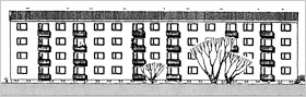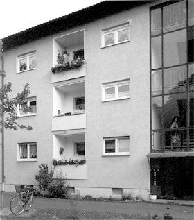 ![]() Eingangsseite (Foto: Th. Arns) ![]() 1-Zi- Appartements ![]() Normalgeschoß ![]() Normalgeschoß |