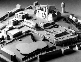 der Theodor-Heuss-Platz eine räumliche Fassung erhalten. Es dauerte jedoch noch Jahre, bis wir die kommunalen Gremien und die Remscheider Bürger von unserem Konzept überzeugt hatten - und bis wir einen Investor fanden, der in der Lage war, das Projekt durchzuführen: die Einkaufs-Center-Entwicklungsgesellschaft (ECE) Hamburg. Die Planung für den schließlich realisierten Bau erstellten wir zusammen mit dem Architekten Klaus Kuhn von ECE. Nach langwierigen Auseinandersetzungen konnte 1984 mit dem Bau begonnen werden, 1986 wurde das Allee-Center der Öffentlichkeit übergeben. |