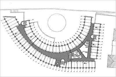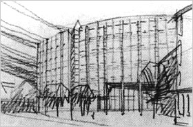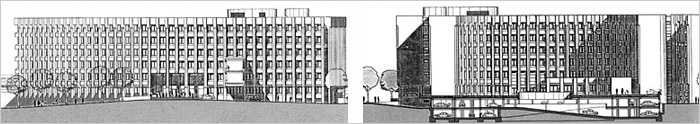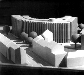 Manchmal kann man Projekte, die einem besonders ans Herz gewachsen sind, leider nicht realisieren. Auf Anfrage der Berggewerkschaftskasse erarbeiteten wir ein Konzept für ein Verwaltungs- und Institutsgebäude. Ich halte den Entwurf nach wie vor für hervorragend; es stellte sich jedoch heraus, daß die großzügige Auslegung der Räumlichkeiten das Budget der BGK überforderte. Arnold Rupprecht realisierte stattdessen 1985 einen kleineren Institutsbau an einem anderen Standort. |