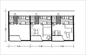 ![]() Eingangsseite (Foto: Th. Arns) ![]() 1-Zi- Appartements ![]() Normalgeschoß ![]() Normalgeschoß |