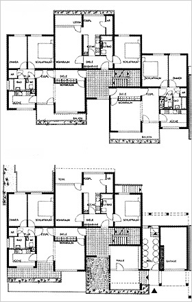 ![]() Grundrisse: Wohngeschoss (oben), Erdgeschoß (unten) |