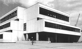 belichtet. Um diese Halle herum sind die Klassenräume gruppiert. Seitlich