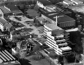 Auf dem Betriebsgelände standen bis dahin nur die Hallenbauten der Produktion,