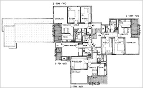 ![]() Grundriß Normalgeschoß mit 3 Zimmer-Wohnungen |