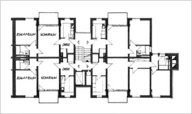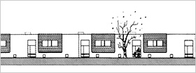 ![]() Für Mixsiepen planten wir ein kleines Ladenzentrum. Im ersten Obergeschoß befinden sich 1-Zi-Appartements. |